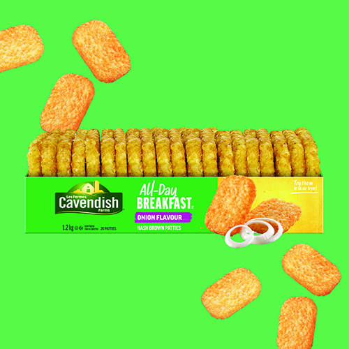 A tasty choice any time, Cavendish Farms Classic Onion Hash Brown Patties are for the hash brown lover looking to shake things up. Made with real onions and premium potatoes and coated for a crispy exterior, they’re incredibly convenient and versatile. Load them up with anything you like for a savoury meal or quick snack. Made in Canada from domestic and imported ingredients.