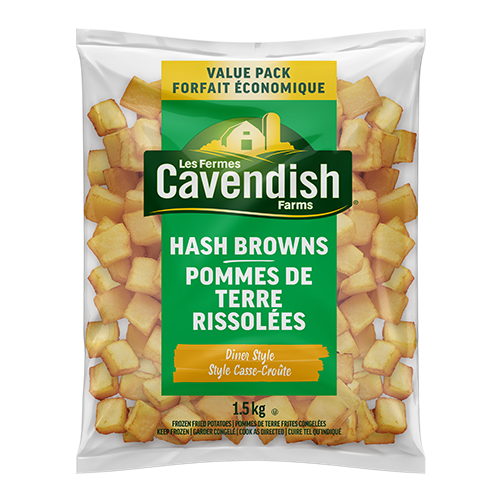 Big cut equals big taste, and these hearty restaurant style hash browns are no exception. Their pure potato taste makes them a delicious focal point for breakfast or a versatile ingredient in any dish you like. With no cutting or peeling required, Cavendish Farms Restaurant Style Diner Style Hash Browns are the perfect product for creative home cooks who love convenience! Made in Canada from domestic and imported ingredients.